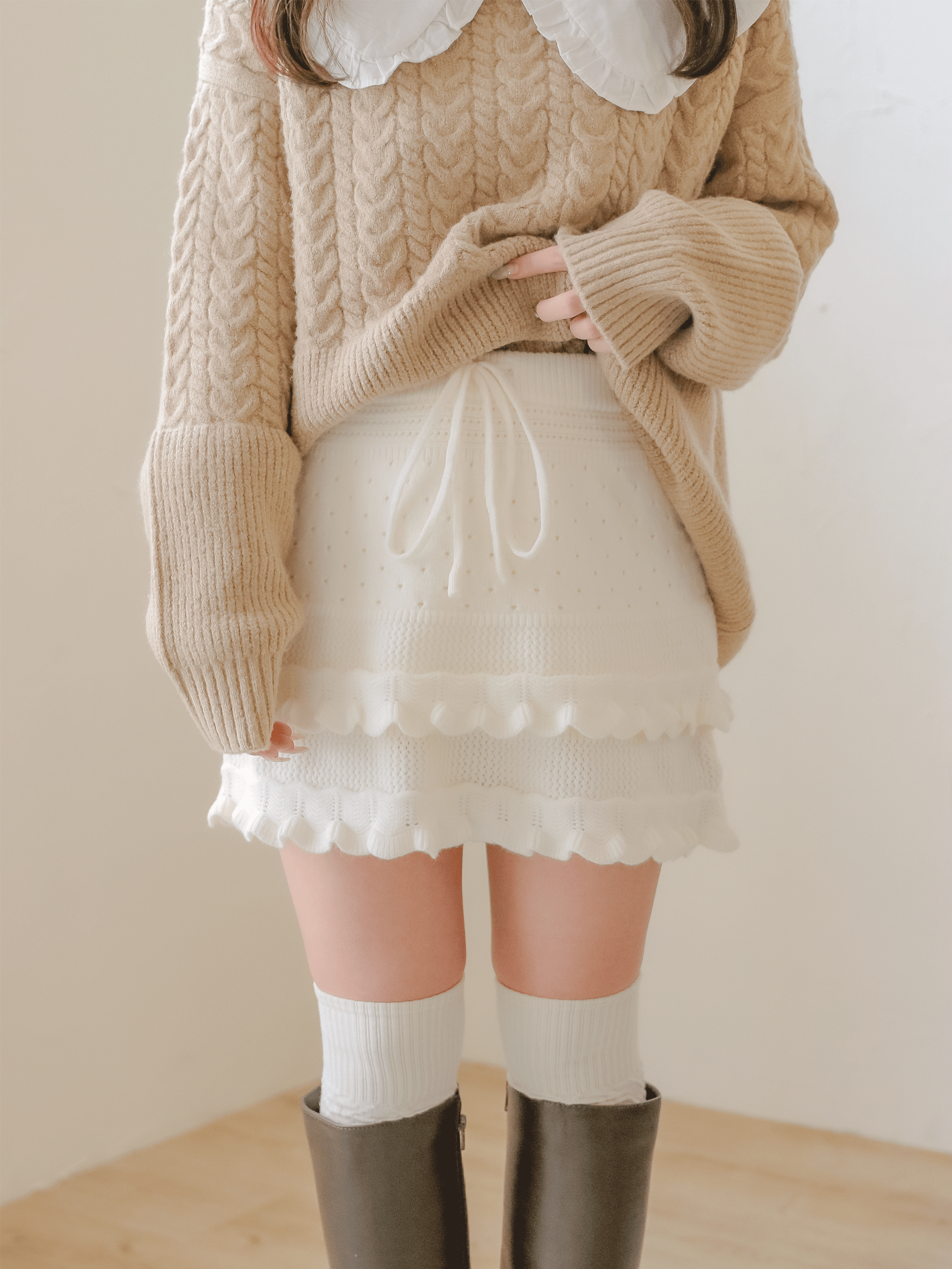 Fluffy Knit Layered Skirt